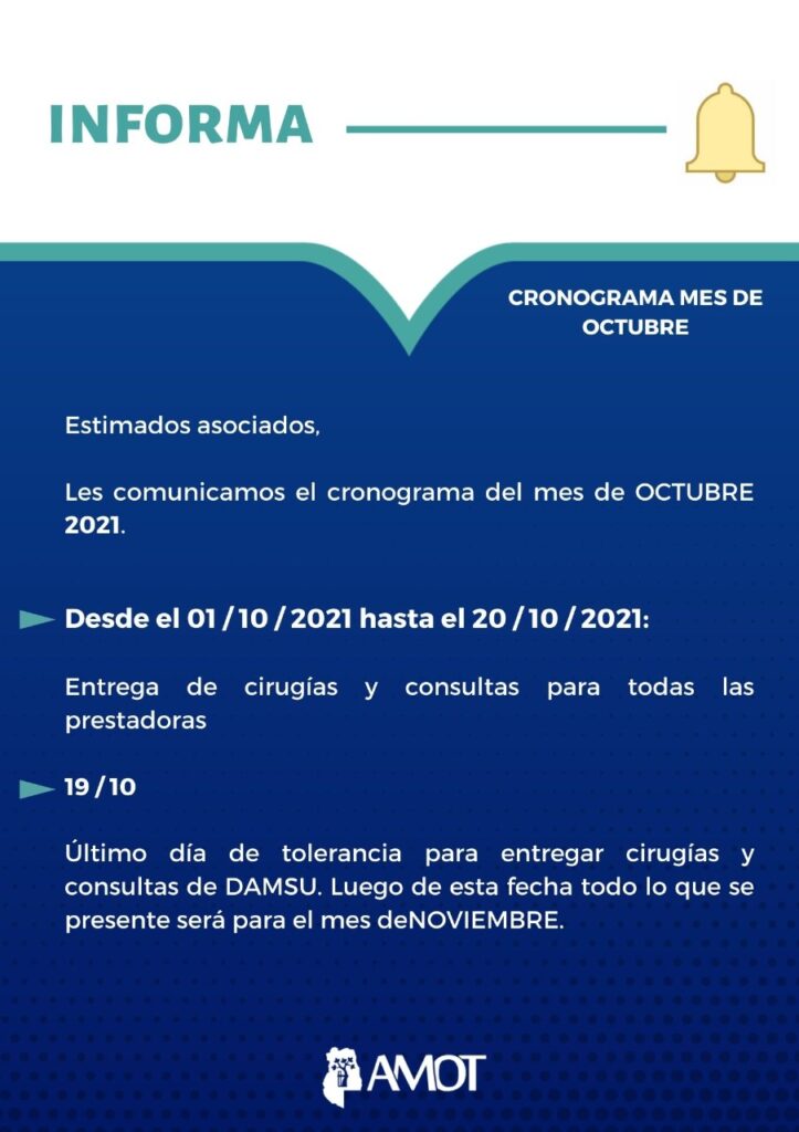 AMOT INFORMA – Cronograma Octubre 2021